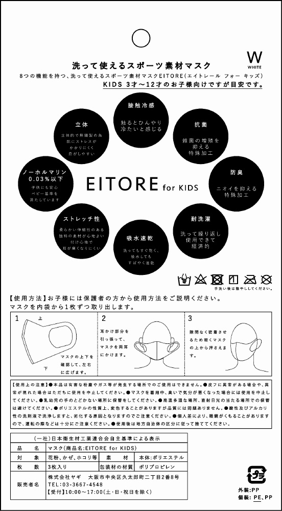 | 商品名 | EITORE エイトワール for KIDS 3枚セット(キッズサイズ/ホワイト) ETMK-1 【864】 |