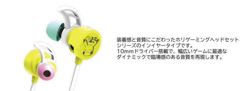 「ピカチュウ」デザインのホリゲーミングヘッドセットインイヤーです。