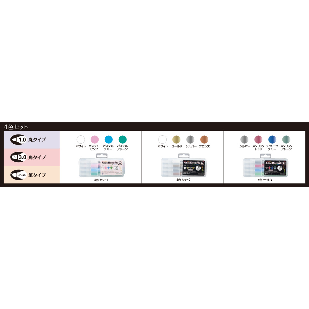 | 商品名 | 水性ペン [筆タイプ] Artline Decorite(アートライン デコライト) 4色セット3 EDF-F/4PSH3 |