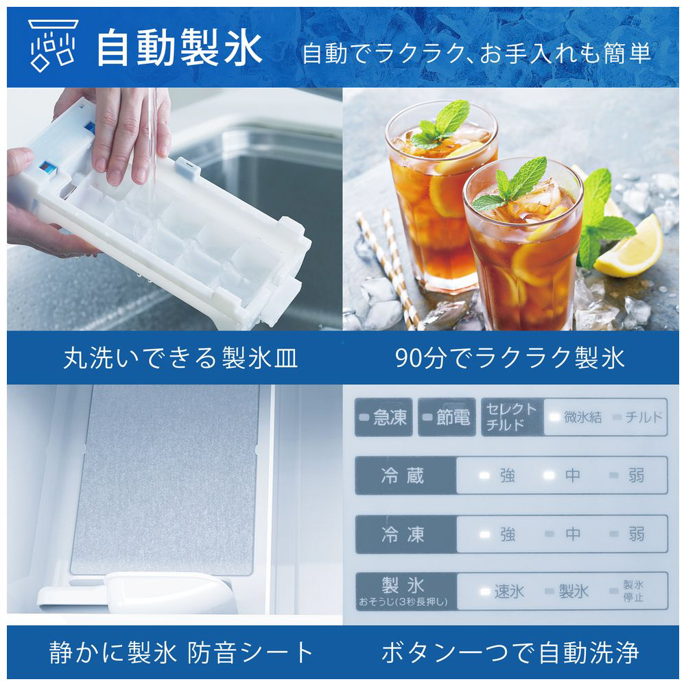 自動製氷システム&セレクトチルド室搭載で、美味しさと便利さを実現した約20dB静音設計の冷凍冷蔵庫。