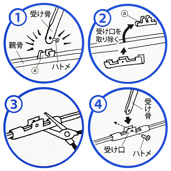 傘骨の間接が骨折した時の補修に使用します。