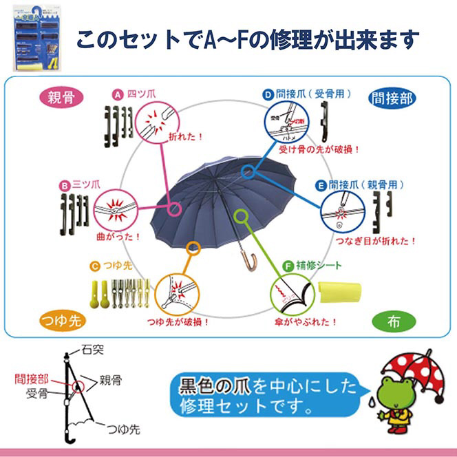 折れた傘、曲がった傘も修繕・補修できるかさ修理セット
