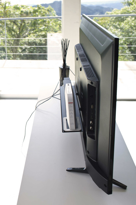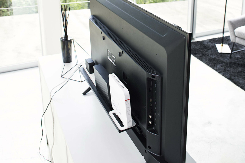 テレビの裏面に簡単取り付け。テレビ裏のスペースを有効活用。スマートスピーカー(AIスピーカー)・リモコン・録画用HDD・ゲーム周辺機など、テレビ周りの小物が置けて便利。ルーター・外付けHDD・電源タップなどをテレビ裏にすっきり一括収納。VESA規格対応。テレビ裏のネジ穴にねじ込んで固定するだけなので簡単に設置できます。テレビ裏で隠して収納できるのでテレビ周りをすっきりと整理整頓する事ができます