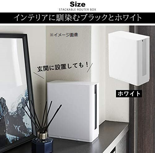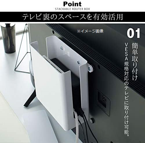 置き場所に困るモデムやルーターを玄関先やリビングですっきり収納。モデムやルーター、HDDなど複数の周辺機器とコード類をすっきり収納。 2個組み合わせればスタッキング可能な蓋付きのルーター収納ケース。お好みの用途に合わせて設置・取り付け可能。VESA規格にも対応