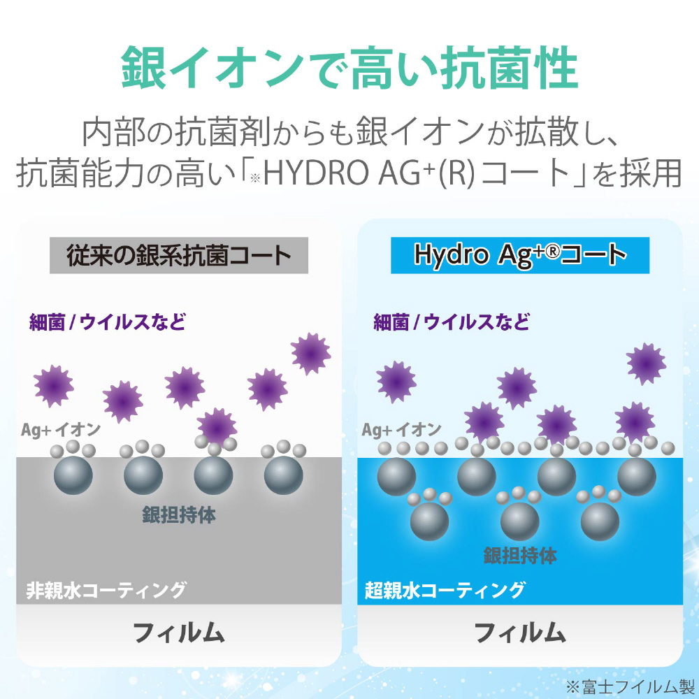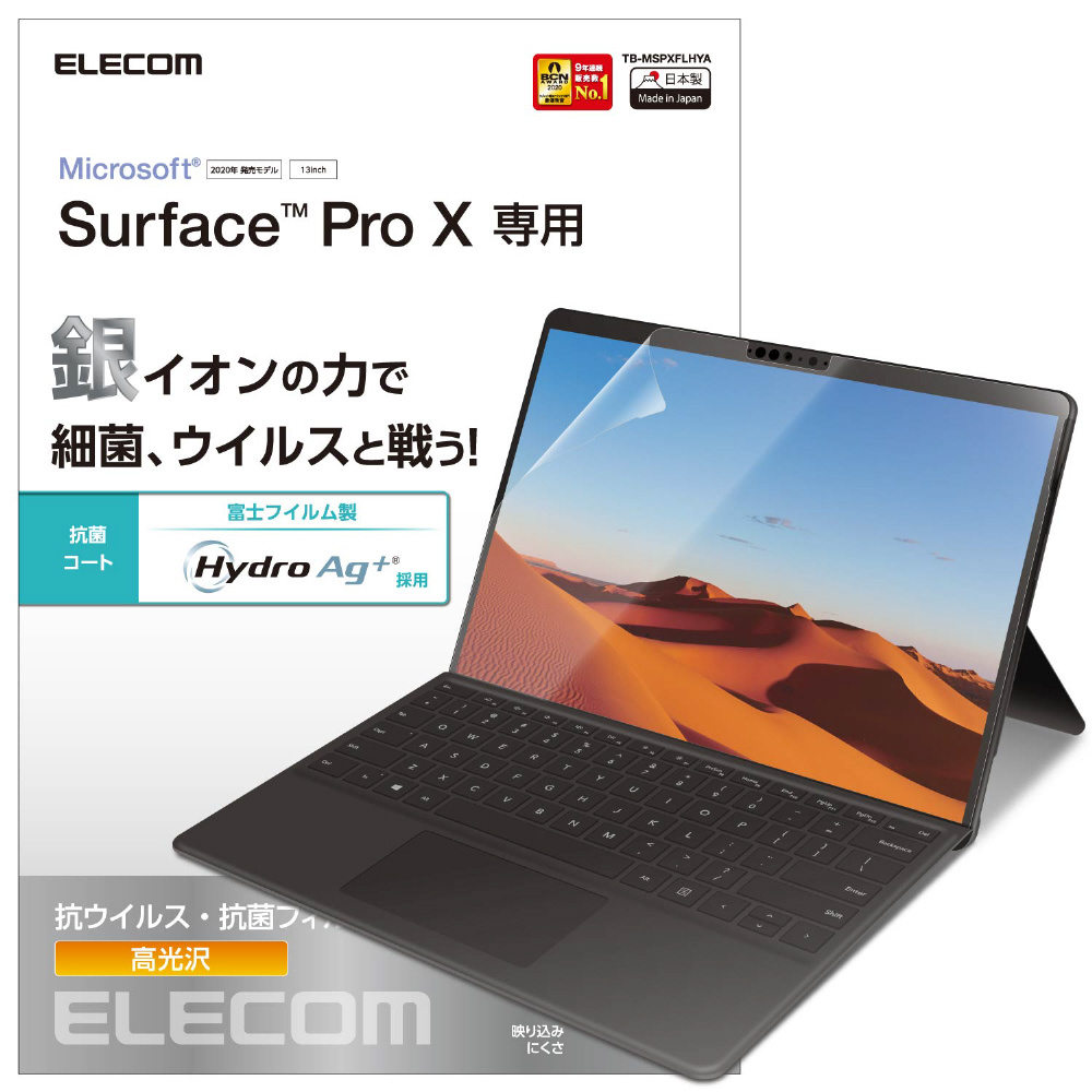抗菌能力の高い富士フィルム特殊抗菌技術HYDRO AG+コーティングを施した、Surface Pro Xの液晶画面をキズや汚れから守る、抗菌・抗ウイルスタイプの液晶保護フィルムです。