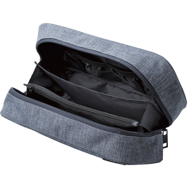■周辺機器からビジネス用品までをまとめて収納可能な、収納物が一覧しやすい自立型ポーチです。