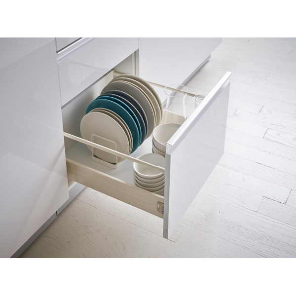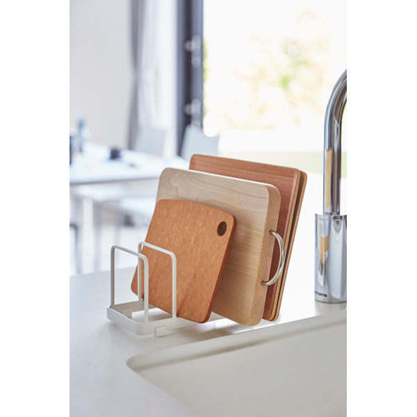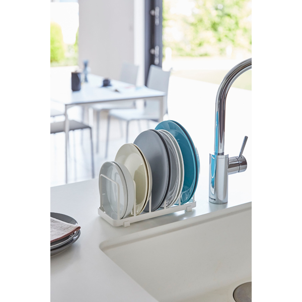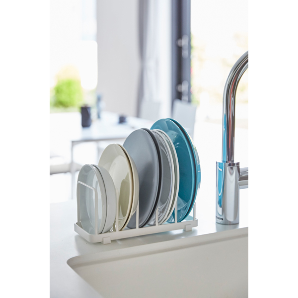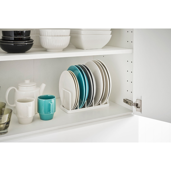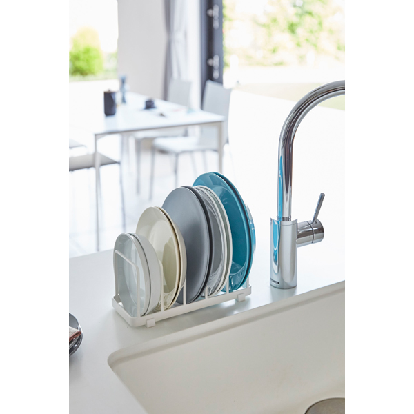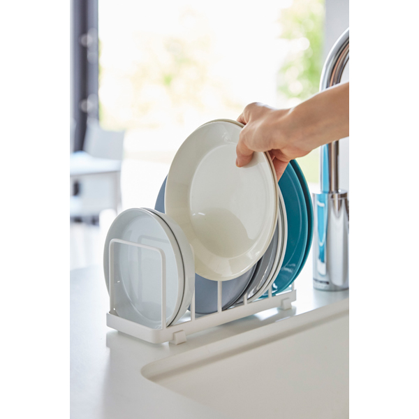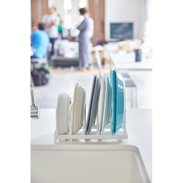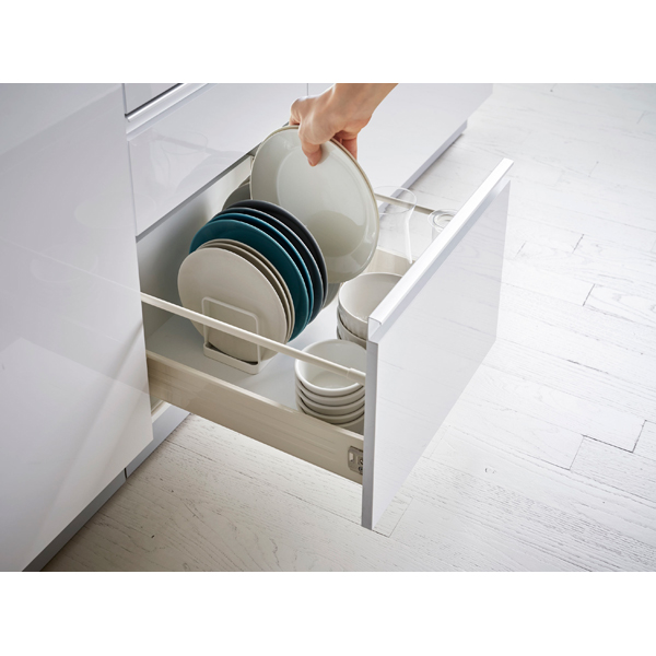 お皿をスリムに立てて収納。使いたいお皿が片手でサッと取り出せます。洗ったお皿を乾かす時に便利。大・中・小のお皿をサイズ別に整頓。保存容器のフタ・まな板・お盆などのスタンドとしても。引出しのスペースに合わせて横向き・縦向きを選択して使用できます。立てることで一目でどこに何があるのか確認できる上、風通しも良く清潔!