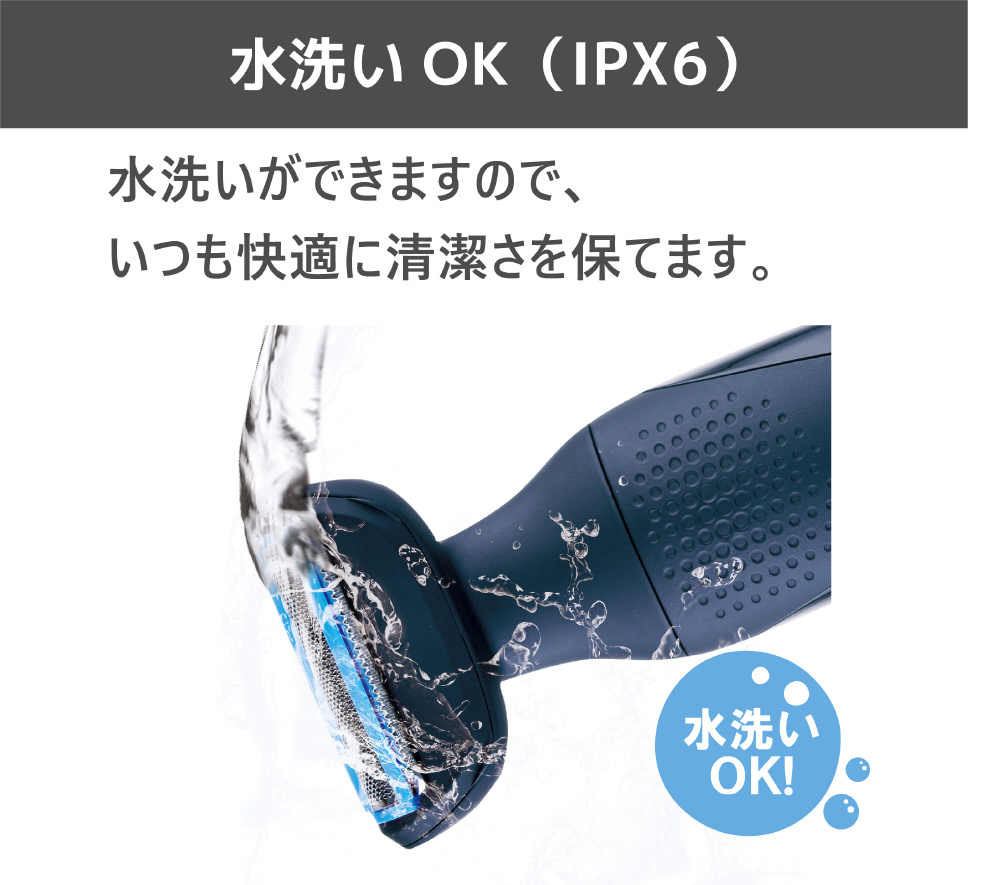 ■防水(IPX6)なので、水洗いができて清潔。WET剃り・石鹸剃りも可能です。