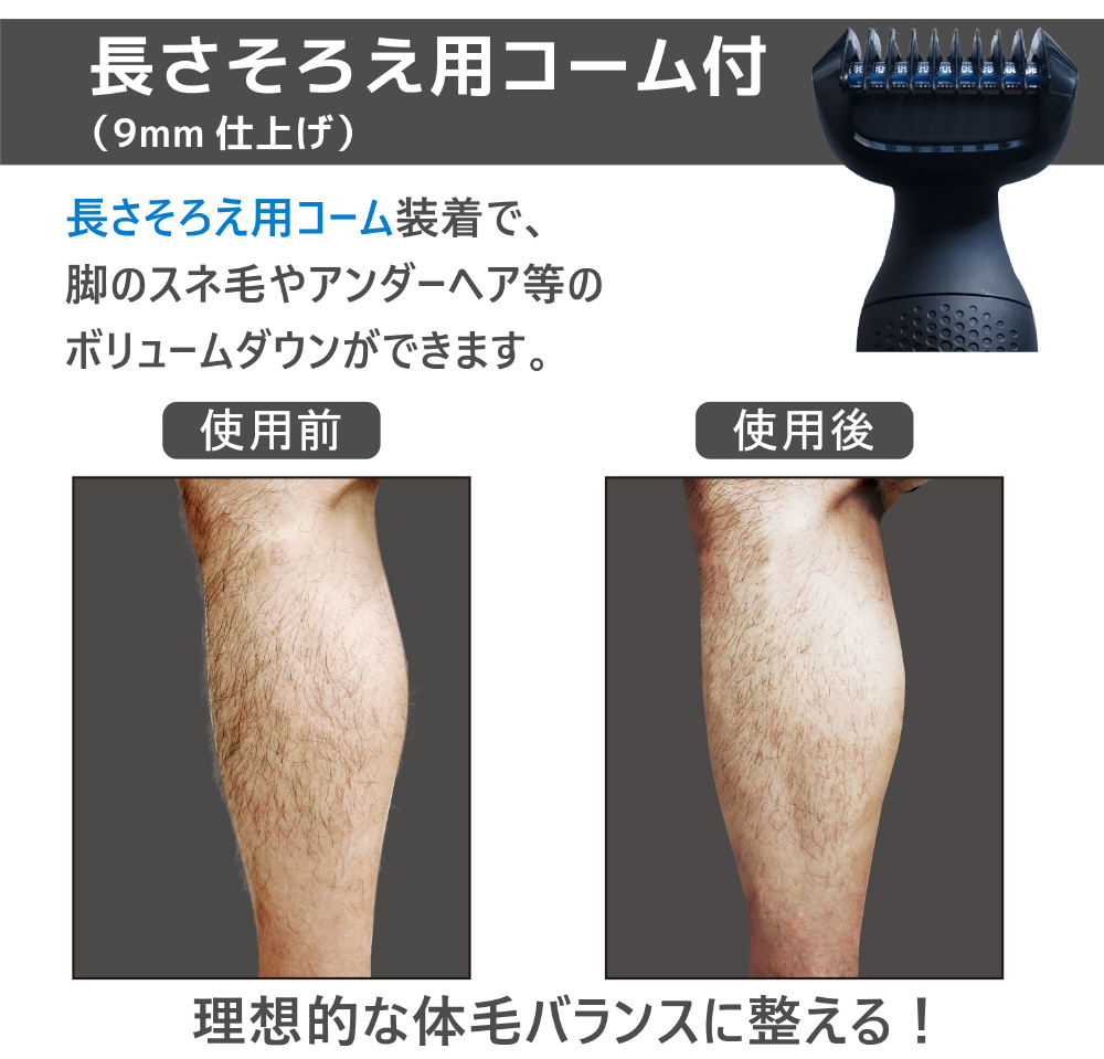 ■トリミングコームで、スネやアンダーヘア等も自然に毛量調整できます。(9mm仕上げ)