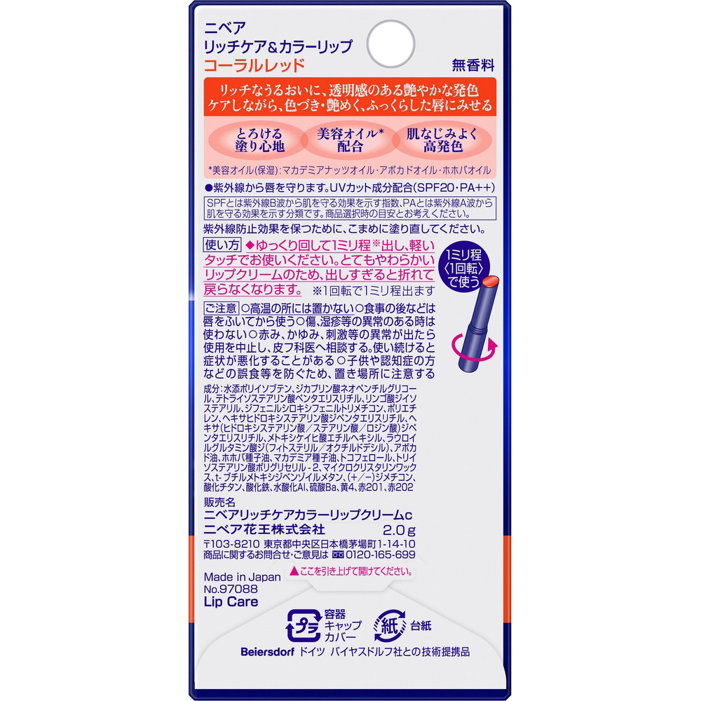 | 商品名 | NIVEA(ニベア) リッチケア&カラーリップ 2g SPF20/PA++ |