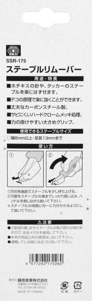 | 商品名 | SK11ステープルリムーバーSSR-175 SSR-175 |