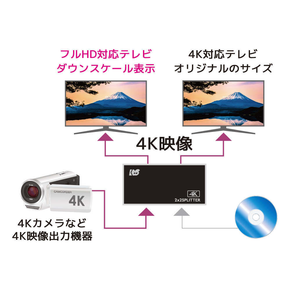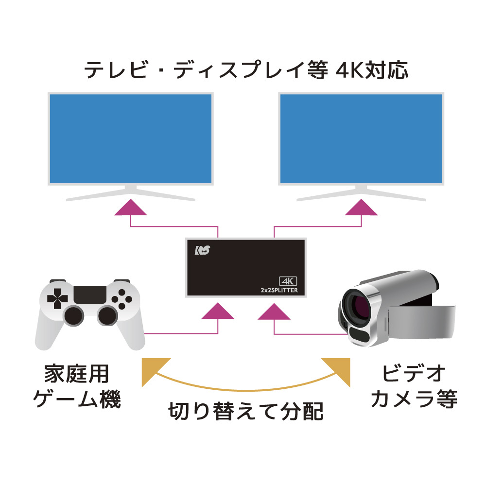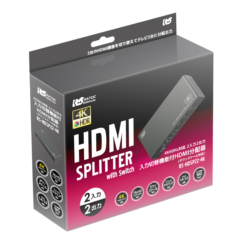 4K60Hz対応 2入力2出力 入力切替機能搭載HDMI分配器