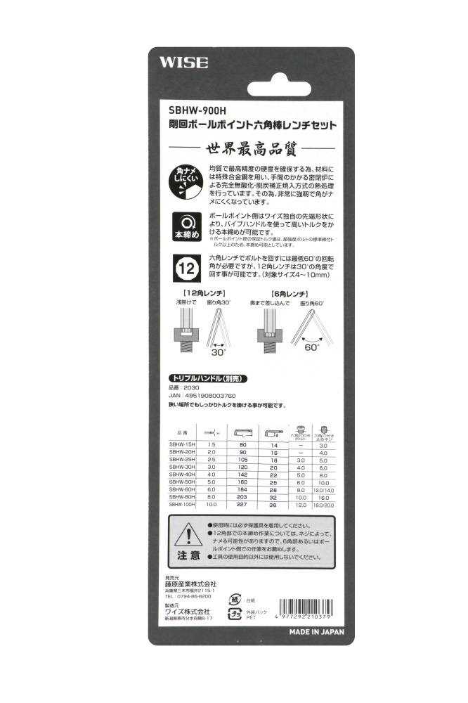 ボールポイント側はワイズ独自の先端形状により、パイプハンドルを使って高いトルクを掛ける本締めが可能です。