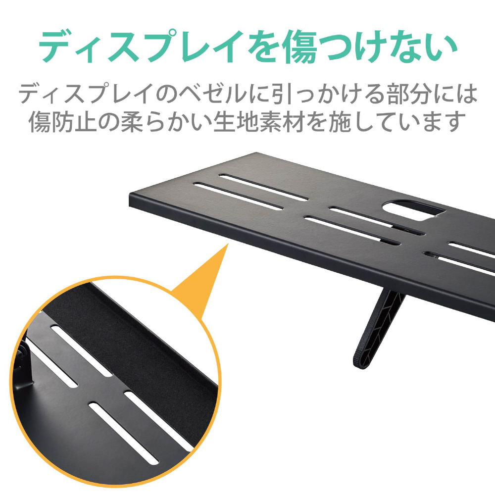■液晶ディスプレイのベゼルに引っかける部分には傷防止の柔らかい生地素材を施しています。