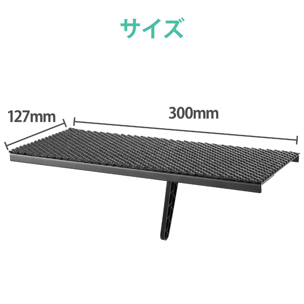 | 仕様1 | 耐荷重:2kg 寸法:約幅300×奥行127×高さ37mm 質量:約477g 材質:本体/スチール・POM、滑り止めシート/PVC |