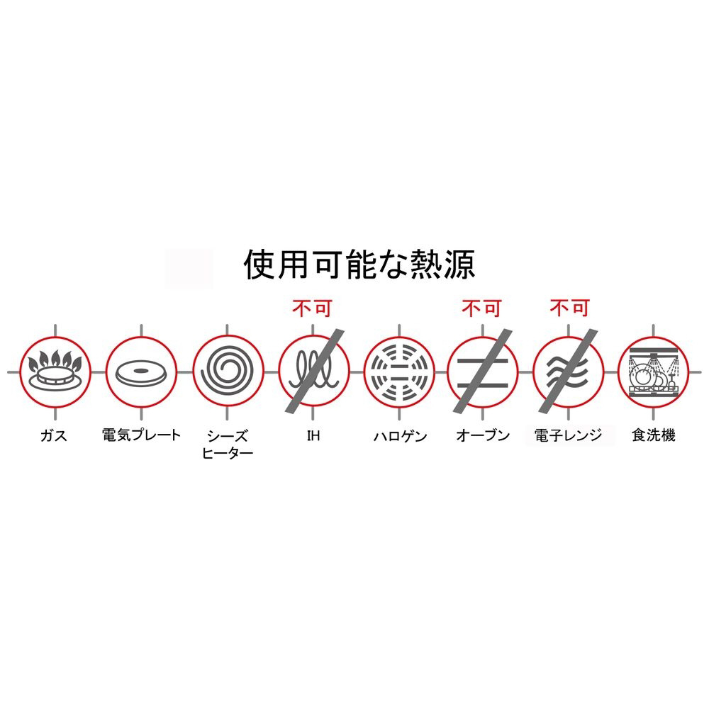 | 仕様2 | 電子レンジ: 不可 オーブン不可 IH 可 食洗機不可 |