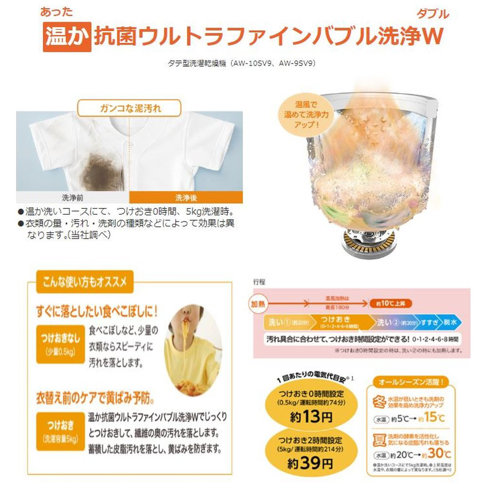 縦型洗濯乾燥機 ZABOON(ザブーン) グレインブラウン AW-10SV9T [洗濯10.0kg /乾燥5.0kg /ヒーター乾燥(排気タイプ) /上開き]