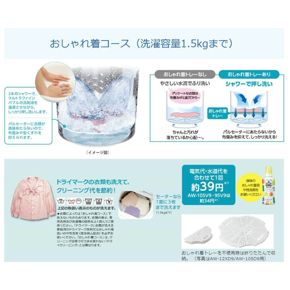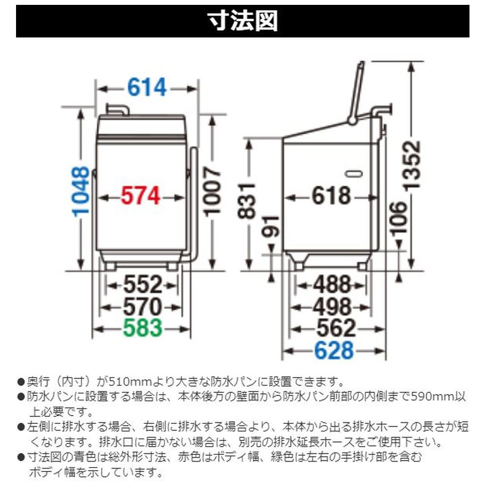 | 付属品 | 風呂水用給水ホースフィルター付き、ホース継手付給水ホース、おしゃれ着トレー、脚キャップ6mm用×2・3mm×2、液体洗剤用ケース、お手入れノズル・チューブ |