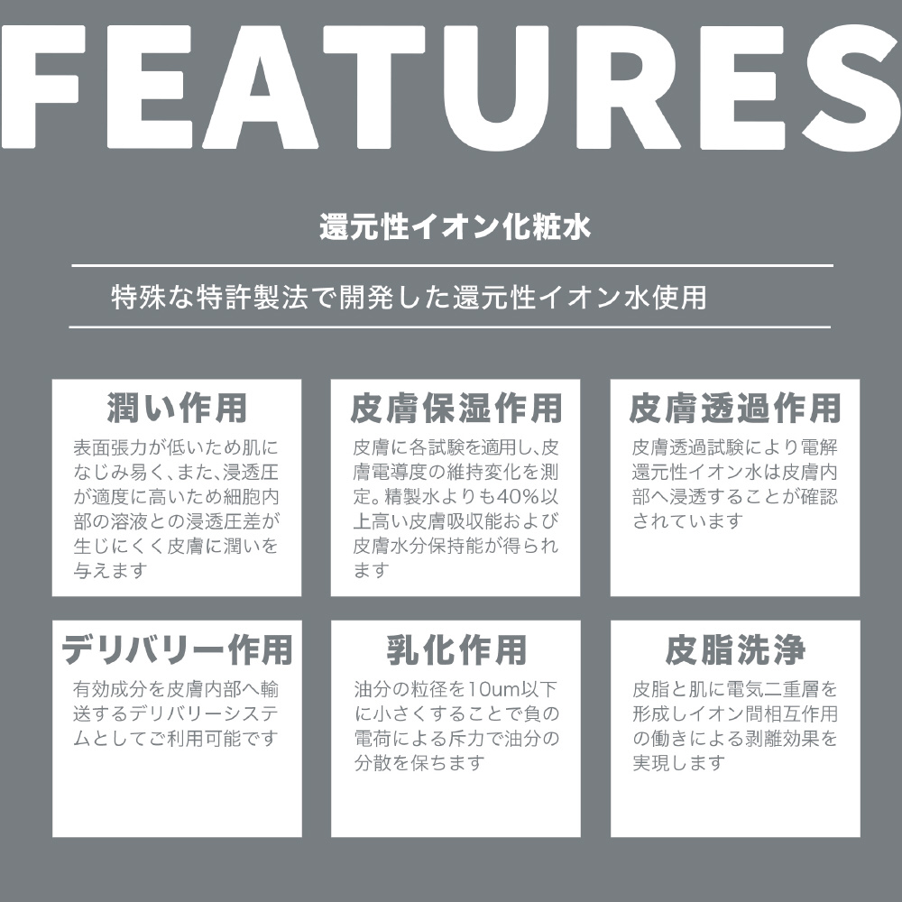 ■特殊な特許製法で開発した高機能還元性イオン水使用