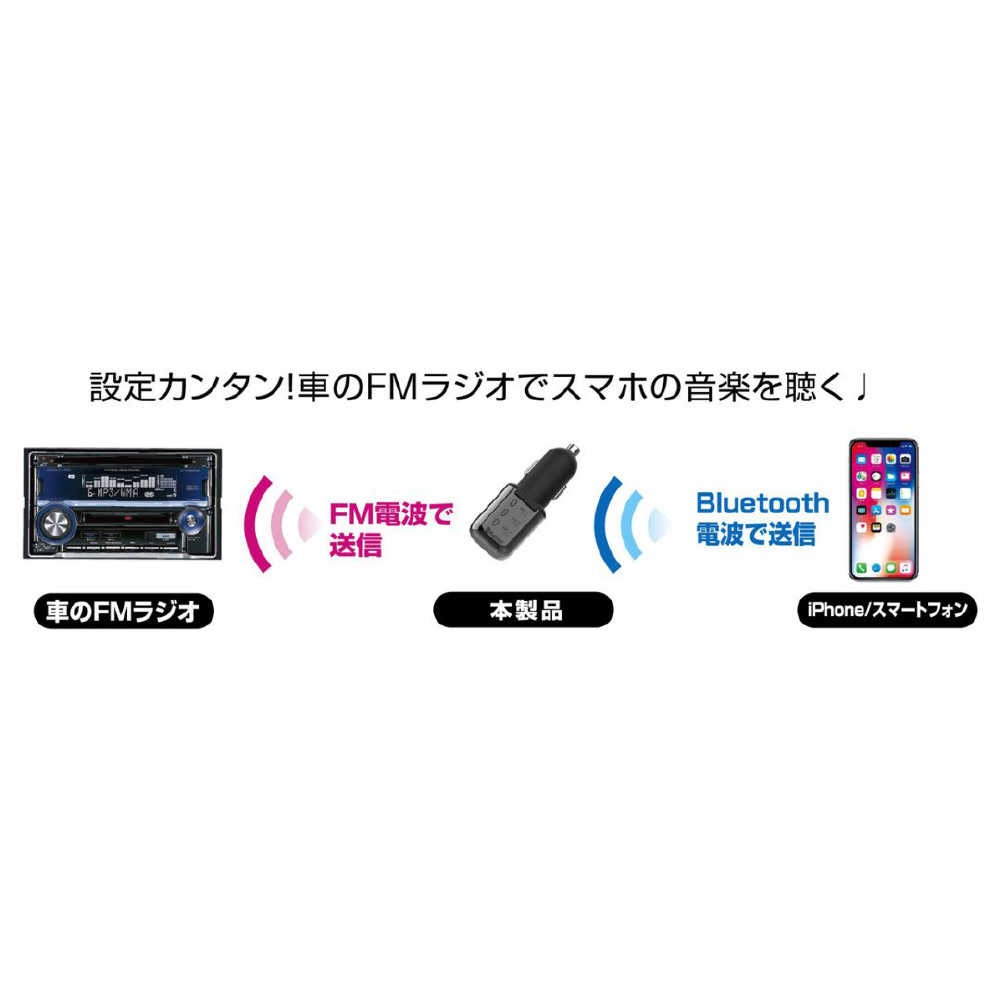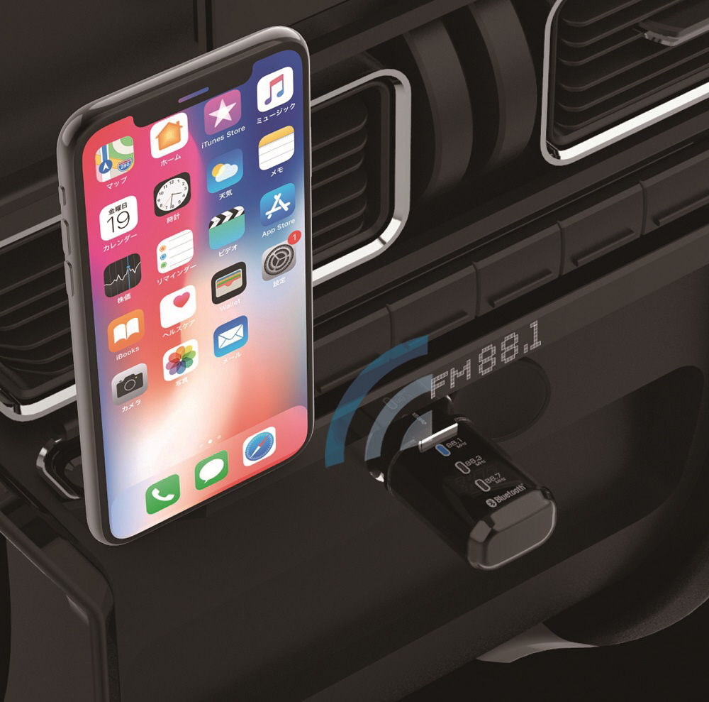 ●Bluetooth対応のスマートフォン/iPhoneの音楽やワンセグ音声をワイヤレスで受信、カーステレオから聴くことができます。