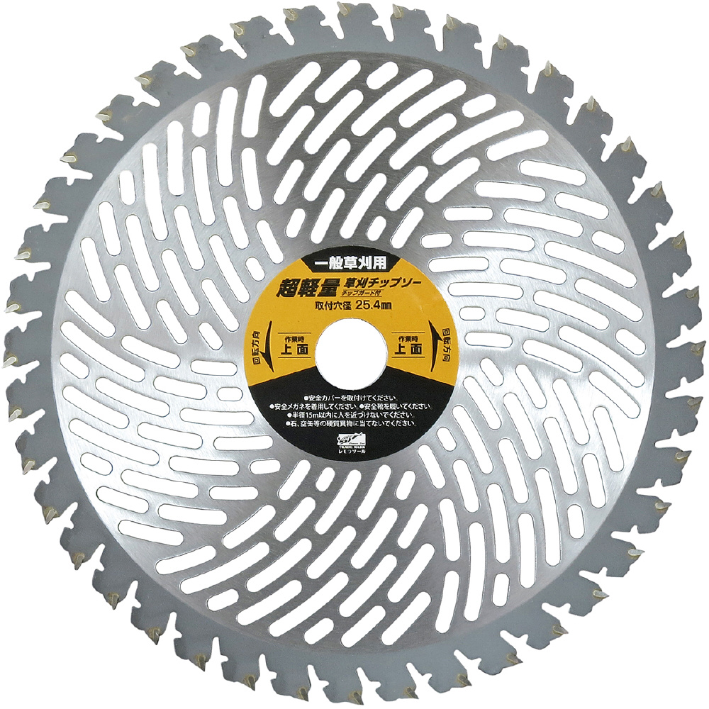 お得な5枚組。当社オリジナル「超軽量化」新台金採用で約30%軽量化※穴明け前との比較。ガソリン,バッテリーの消費を抑え「省エネ効果」。エンジン式刈払機や充電式刈払機にも使用可能。低速で使用しても切れ味の良いチップソーです。混合ガソリンやバッテリーの消耗を抑えることに役立ちますので低速での使用をおすすめします。