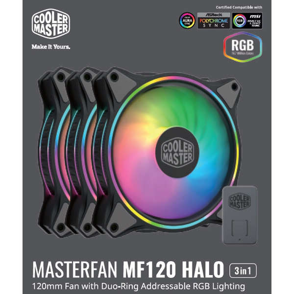 ケースファン[120mm / 1800RPM]+コントローラー MasterFan MF120 Halo 3 in 1 ブラック MFL-B2DN-183PA-R1 【sof001】