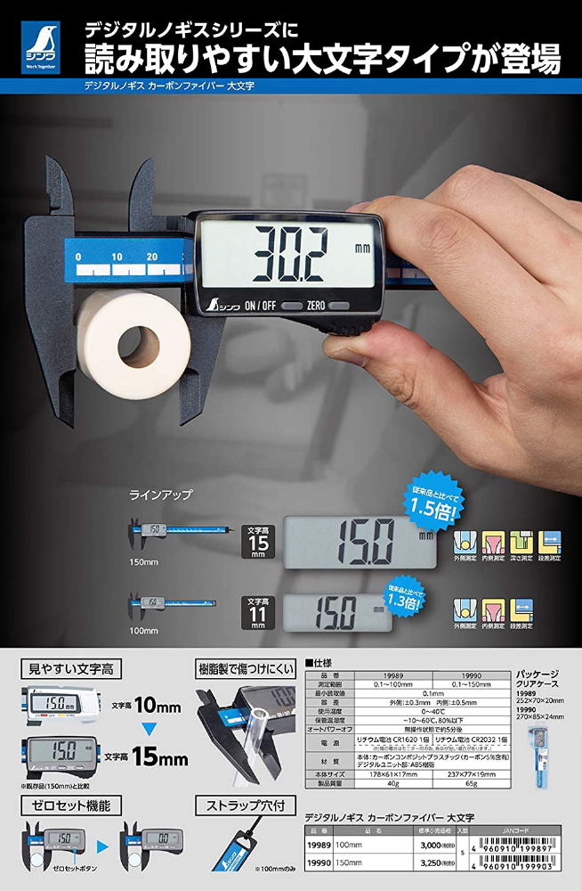シンワ デジタルノギス ファイバー 大文字 シンワ 19989