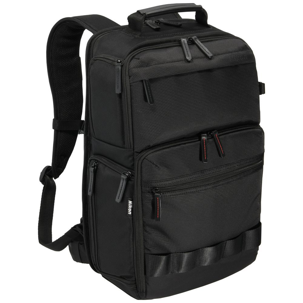 黒を基調としたシンプルなデザインに、カメラバッグならではの多様な機能性を兼ね備えたカメラリュック。