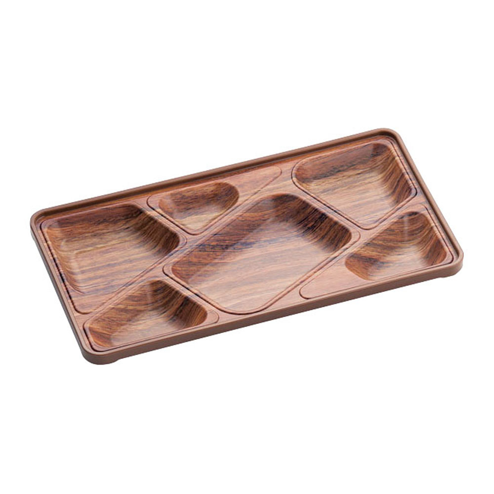 プラスチック製ながら、木製のような色味にしており、温かみが感じられるプレートです。