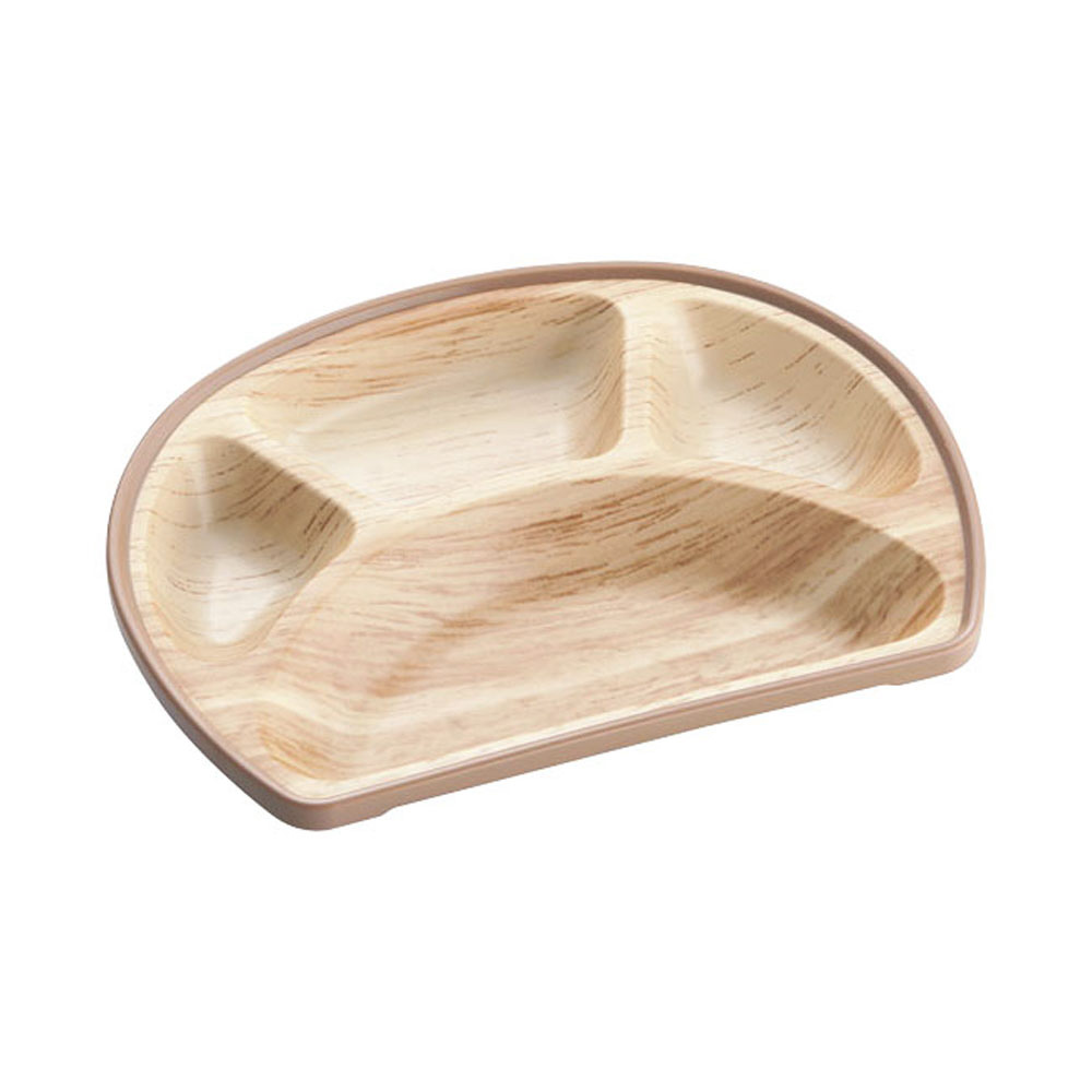 プラスチック製ながら、木製のような色味にしており、温かみが感じられるプレートです。