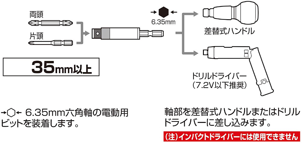 電気工事用、配電盤のネジ締め推奨。設定トルクでネジのオーバートルクを防ぐ!。6.35mm六角軸の電動用ビットを装着。