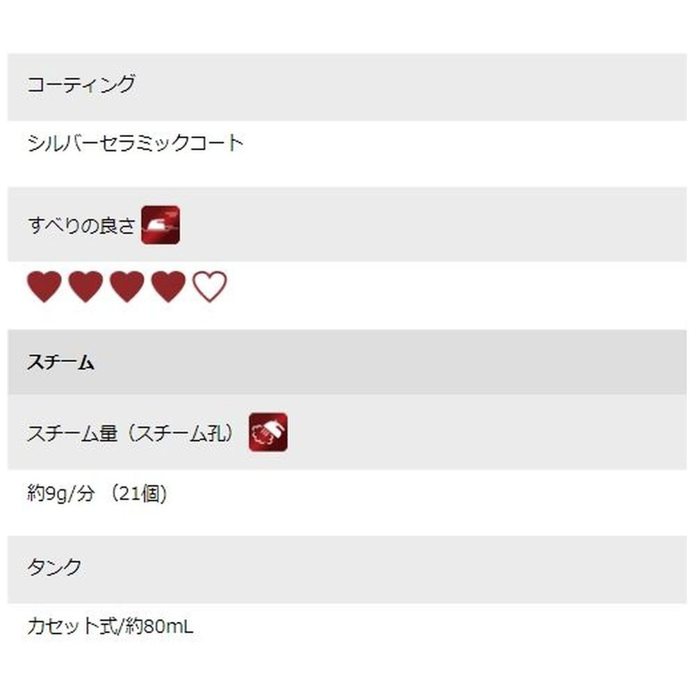 | スチーム量 | 約9g/分 (スチーム孔21個) |