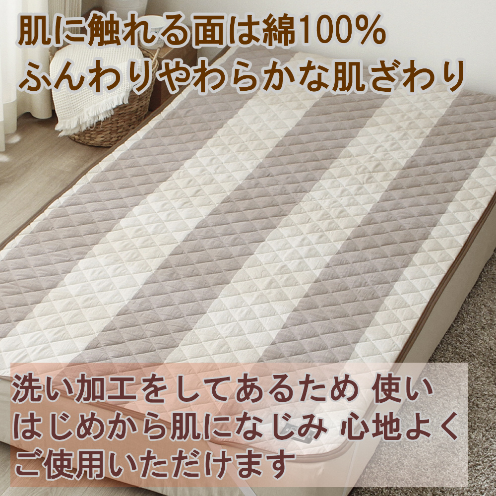 メリーナイト(Merry Night) 敷パッド 100×205cm シングルサイズ グレーネン 四隅ゴム付 綿100% 洗いざらし