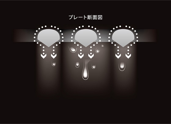 @X形状:プレート裏面を、立体的な“X”の形状にすることで、油の流れを下側に集中させる事ができ、効率的に油を落とします。