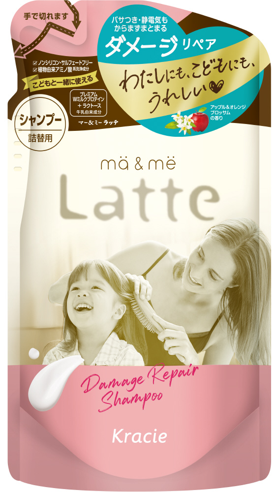 髪と地肌の保湿成分プレミアムWミルクプロテイン、ダメージ補修成分ラクトース配合。