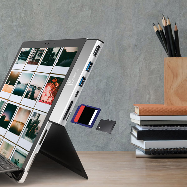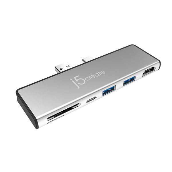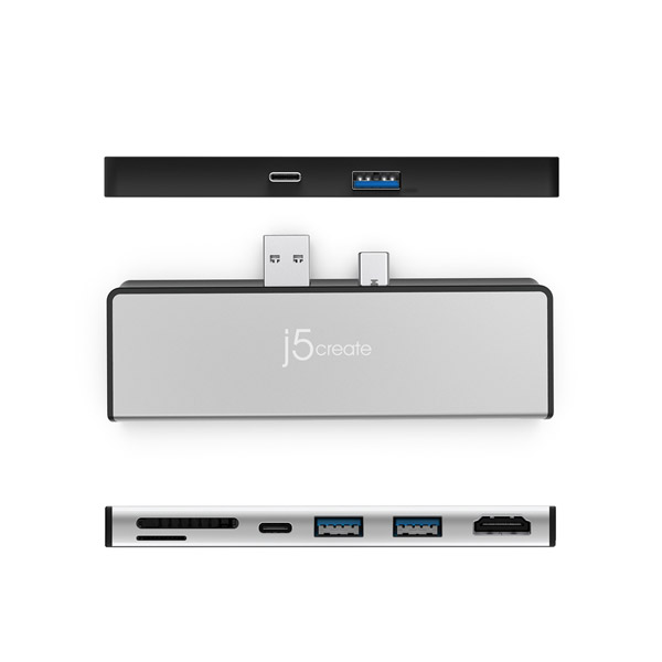 Surface Pro 7用[USB-C / USB-A オス→メス カードスロットx2 / HDMI / USB-Ax2 / USB-C]ドッキングステーション シルバー JCD324S