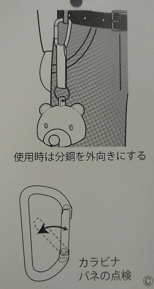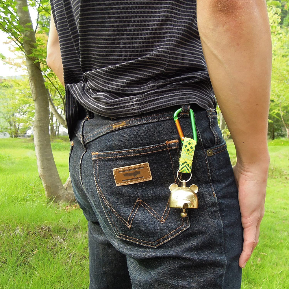 山菜取りなどでのお供に。クマの形状の鼻の部分にバネ付分銅を使っており、音を鳴らす際は分銅を外して使用し、分銅を固定すれば音は鳴りません。