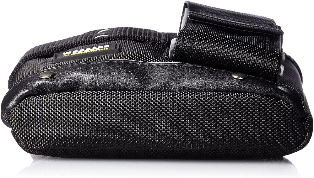 反射ライン付ナイロン小物ケース。携帯電話、ペン類や手帳などが余裕で収納できる出し入れ簡単なチョークバッグ型小物いれ。