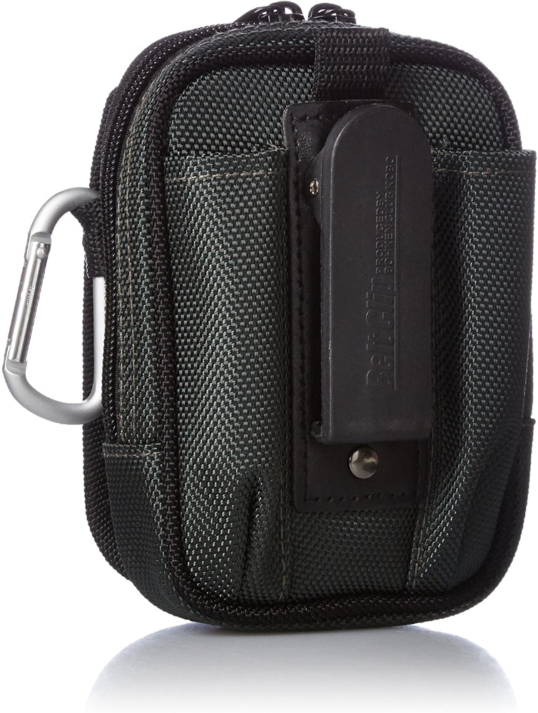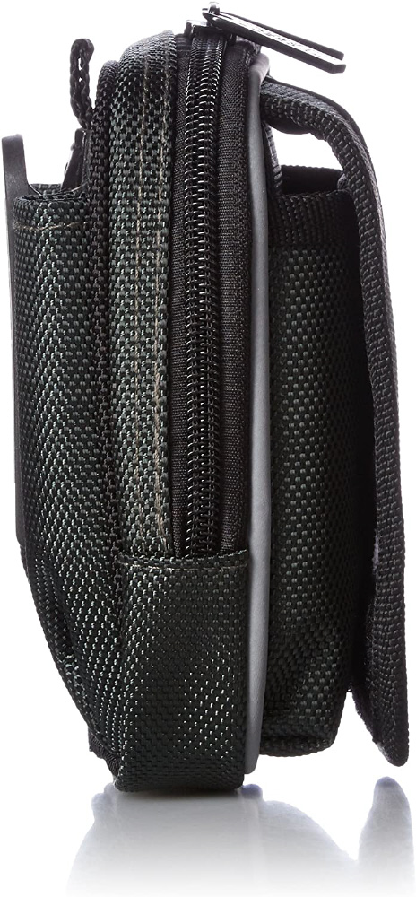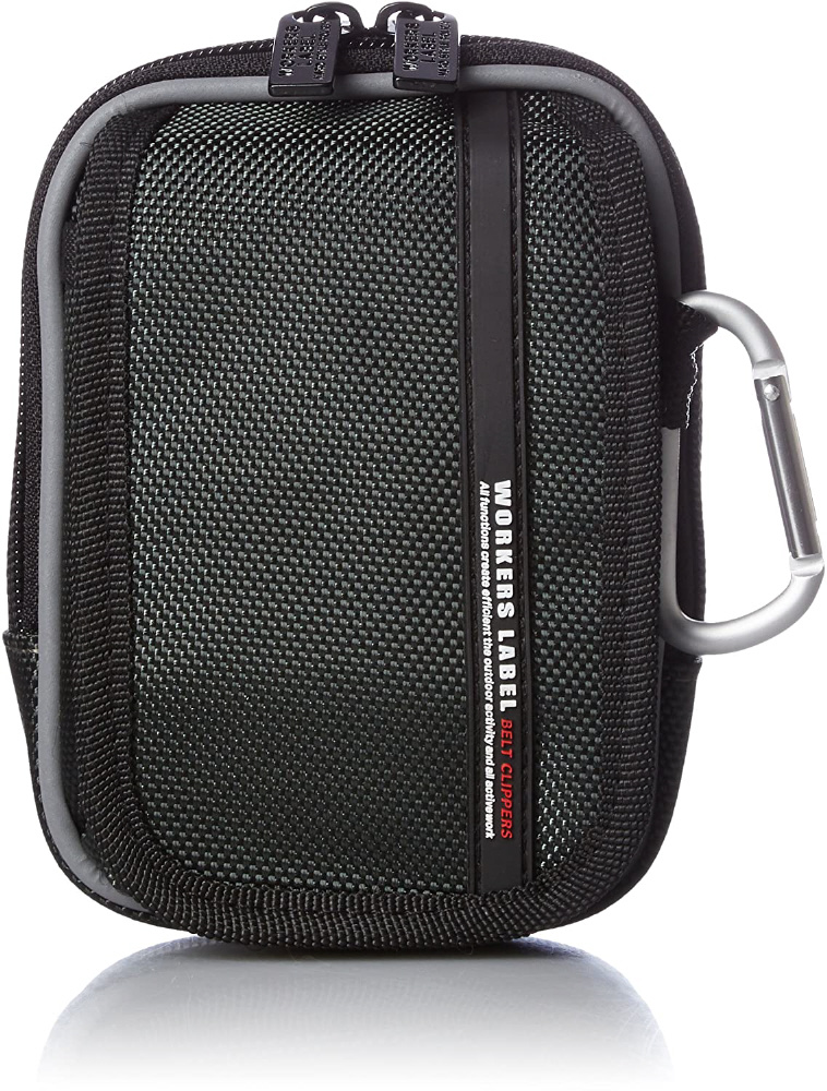 着脱簡単! ベルトクリップ付反射ライン小物ケース。携帯電話が余裕で収納できる少し大きめポケットが付いた小物ケース(ファスナー開閉式)。