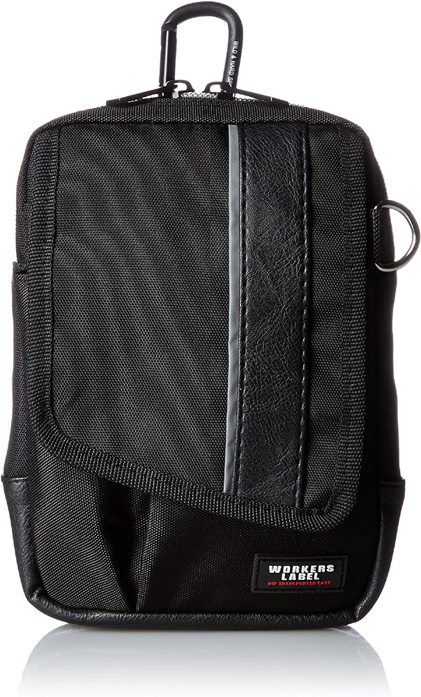 5〜5.5インチのスマホも入る小物ケース。仕事やプライベートでも使える。5.5インチクラスのスマホ・携帯電話・タバコ等に対応したゆったりポケット仕様。ねじれ防止型カラビナ使用。2way装着対応:ベルト・カラビナから装着できる。反射ライン付き、撥水加工。後部は摩擦に強いナイロン製。