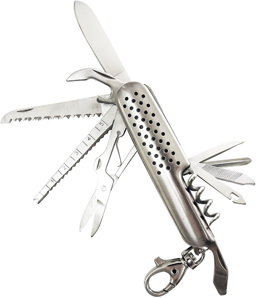 ナイフは440Aステンレス使用。14のツールを搭載した多機能ツールナイフ!!。手仕上げ研磨品!!。