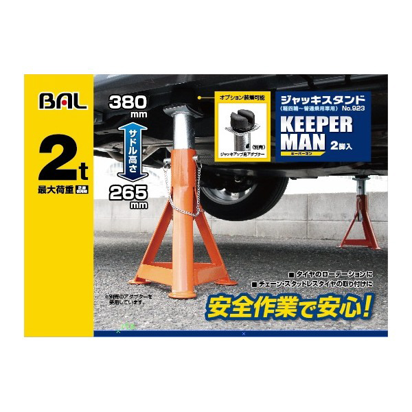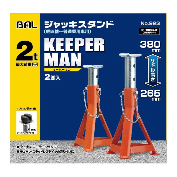 | 商品名 | ジャッキスタンド KEEPERMAN(キーパーマン) 2t 2脚入り NO.923 |