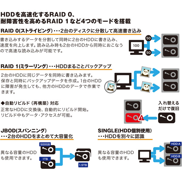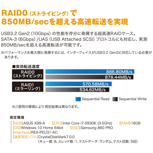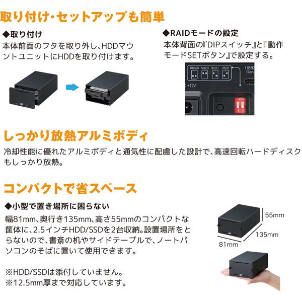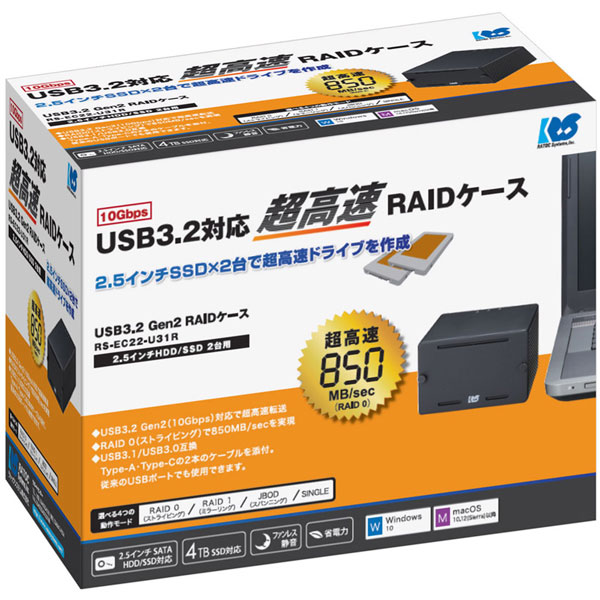 USB3.2(Gen2)対応 超高速 RAID ケース(2.5 インチ HDD/SSD2 台用・10Gbps 対応)