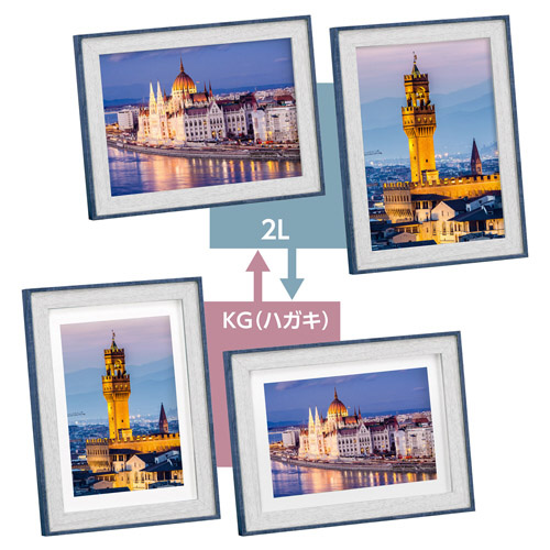 2Lサイズの写真の他に、付属のマットを使うことでKG(ハガキ)サイズの写真も飾れます。