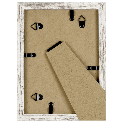 背板の金具と付属の吊りヒモを使って、壁に掛けて飾ることができます。タテとヨコどちらの向きでも掛けられます。