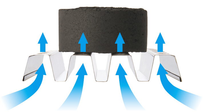 燃焼効率を最大化し、不完全燃焼を防ぐので、グリルの火力がグンとアップ!