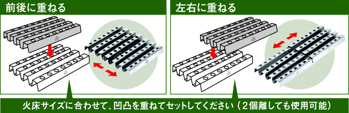 ■火床サイズに合わせて重ねてセット!市販のグリルにも使用可能!