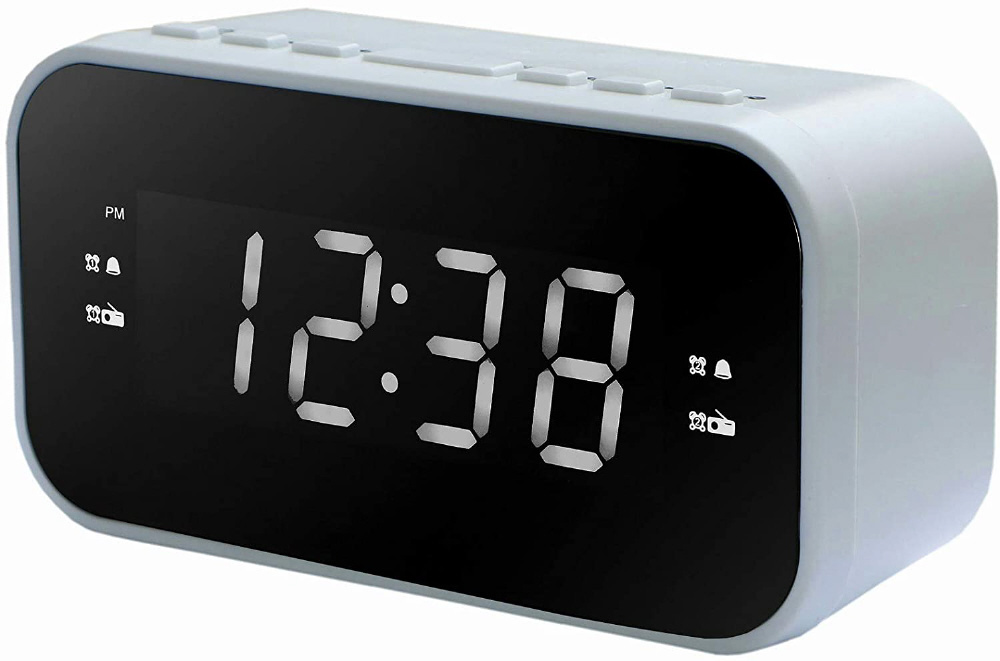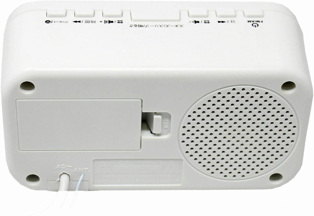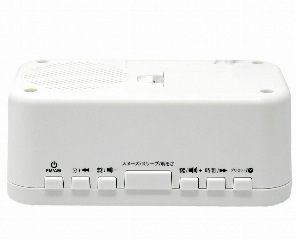 日本語表記で簡単操作。見やすいホワイトLEDで時計表示