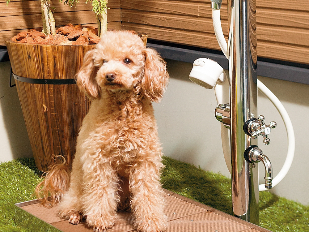 ●上段:湯水混合でペット用の洗い流し、泥落としに最適。