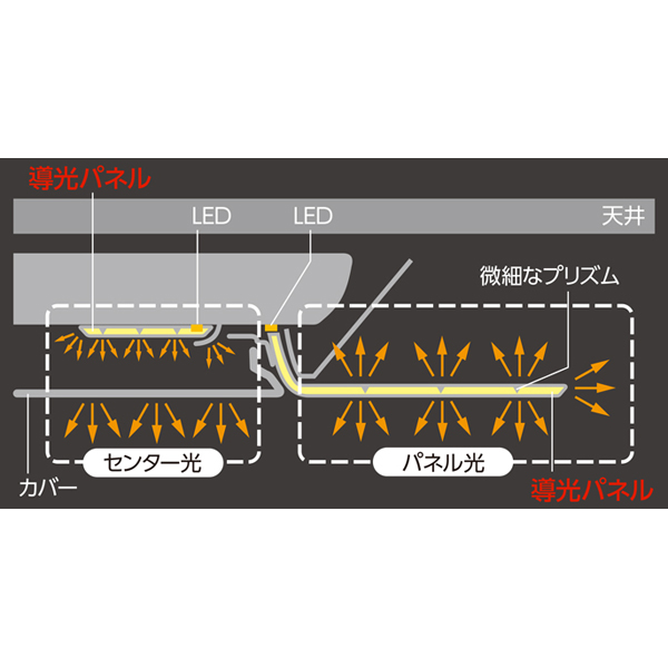 2.センター光とパネル光の点灯・消灯の切り替えで、多彩なあかり空間を演出